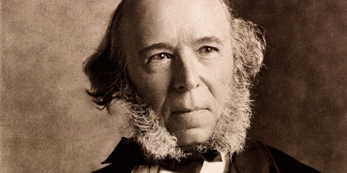 Cuando Spencer (imágen) y luego ciertos ideólogos del siglo XIX acuñan la idea de “supervivencia del más fuerte” y la aplican a la sociedad humana, cometen una doble falsificación: